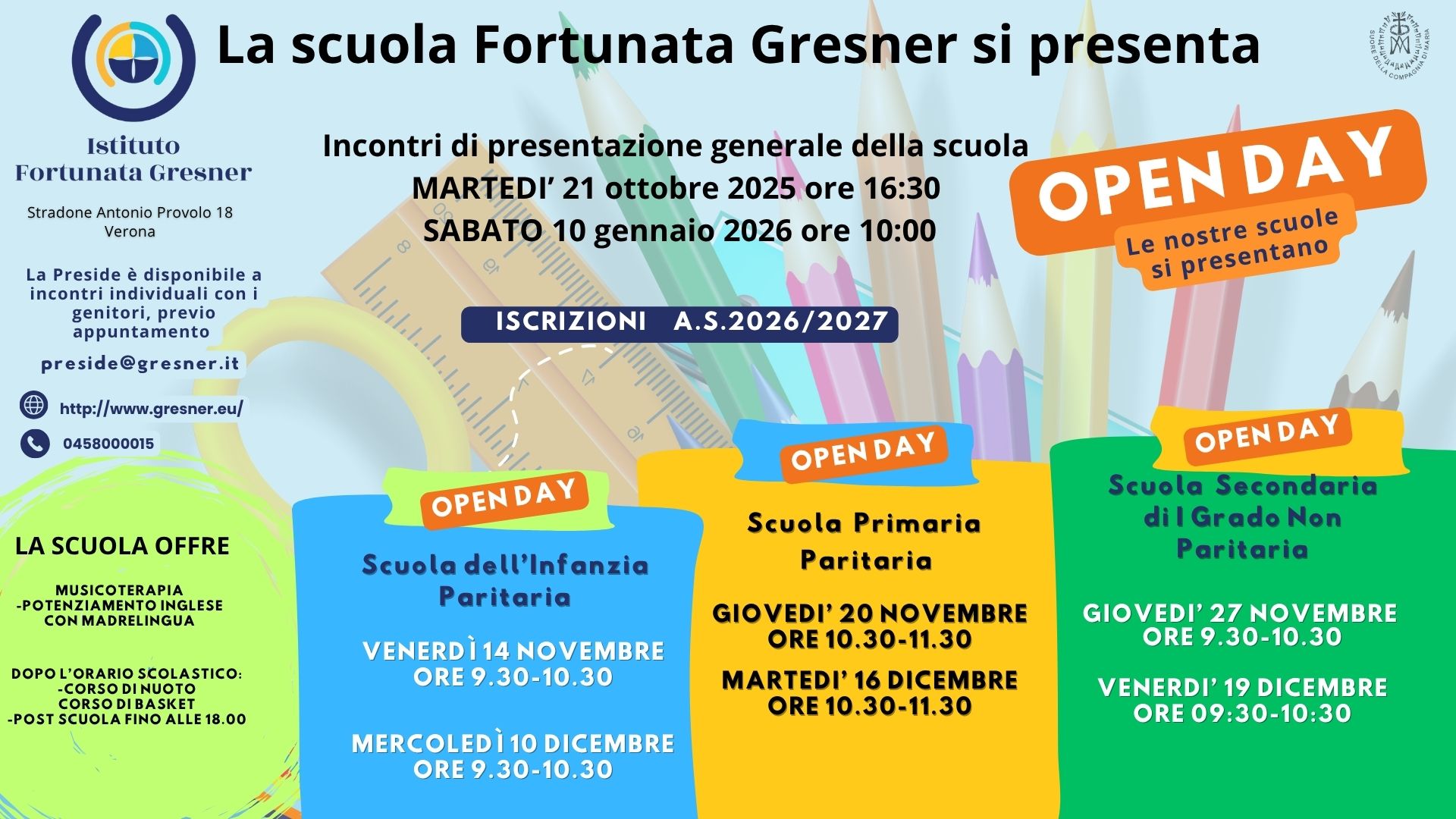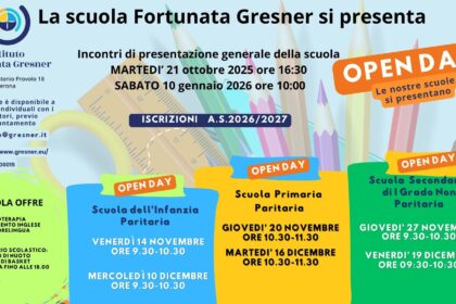 L’ISTITUTO FORTUNATA GRESNER vi aspetta con due OPEN DAY per le Iscrizioni A.S. 2026/2027,