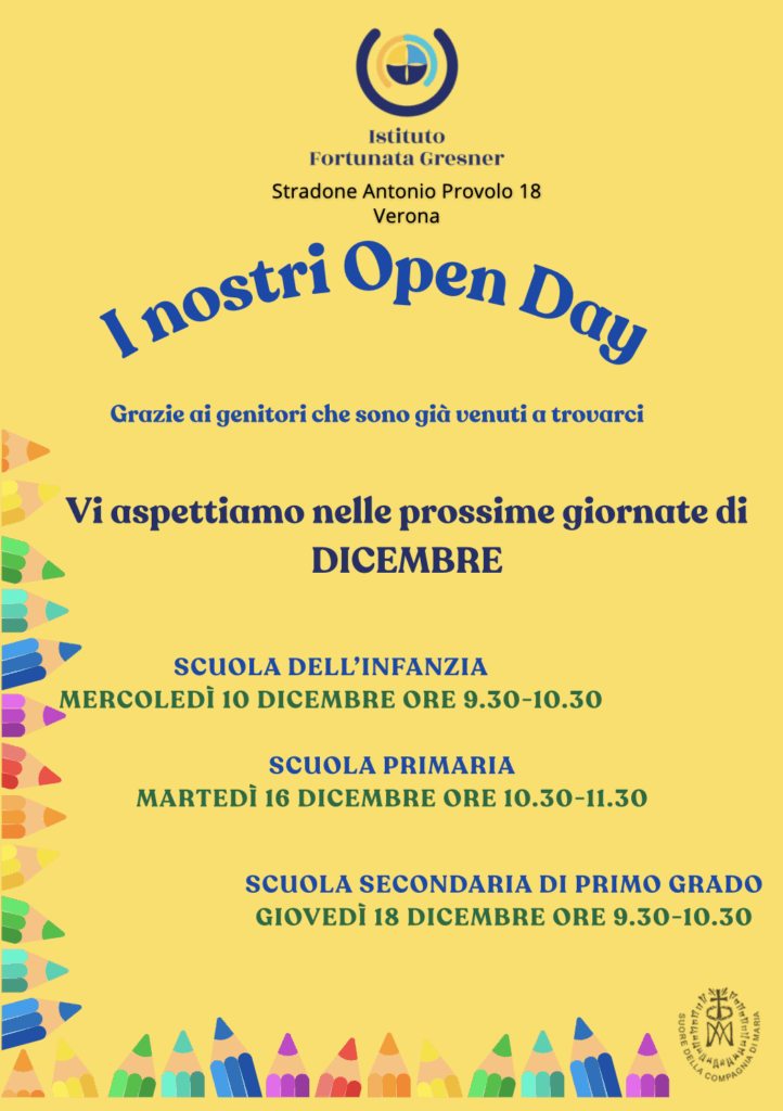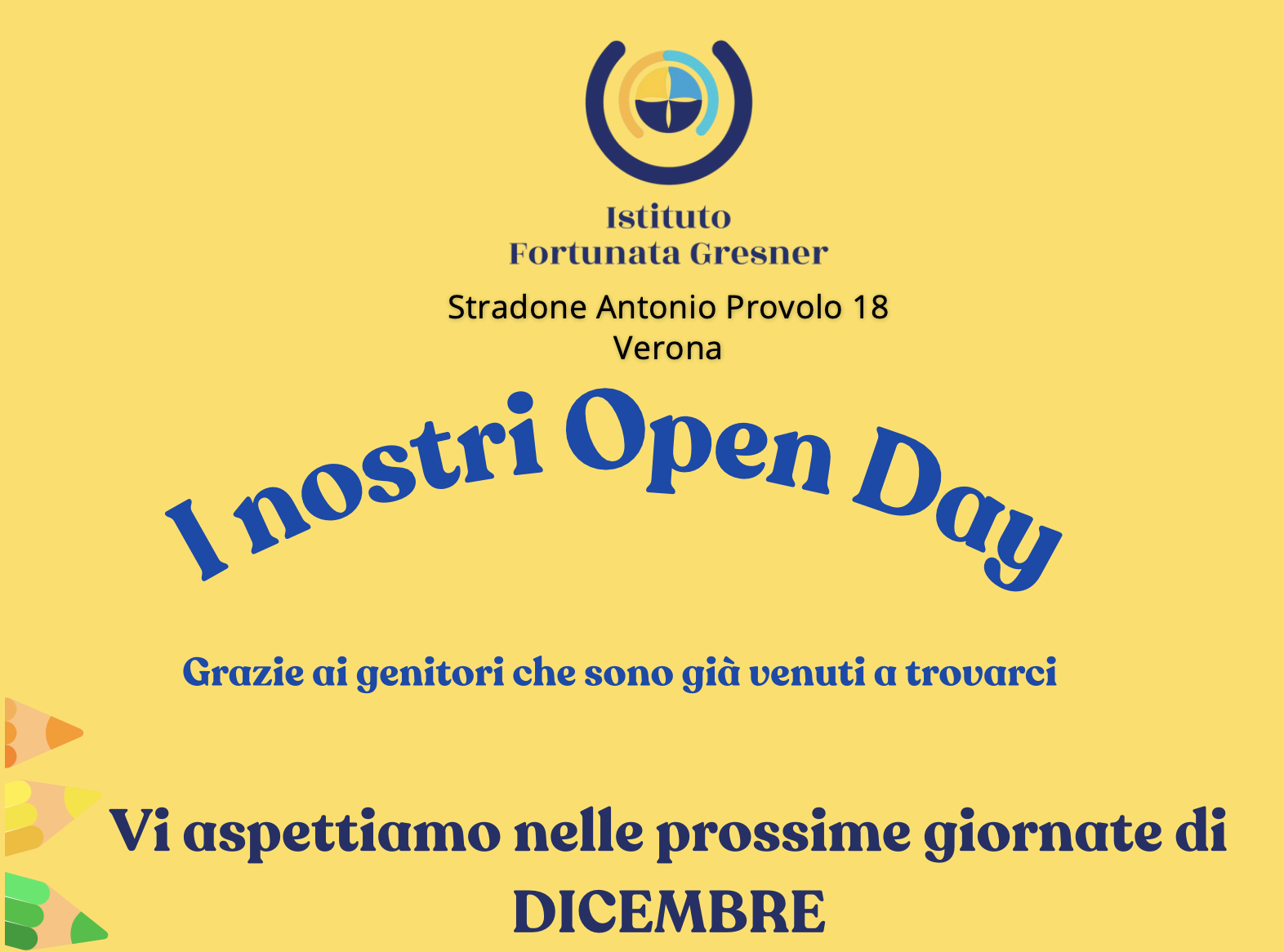 L’ISTITUTO FORTUNATA GRESNER ringrazia i genitori che hanno già partecipato e vi aspetta con gli OPEN DAY del mese di DICEMBRE.